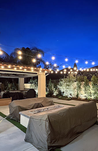 Custom lighting solutions for decks, paths, gardens, and entertainment areas with weatherproof fittings, motion sensors, and timer options for convenience.